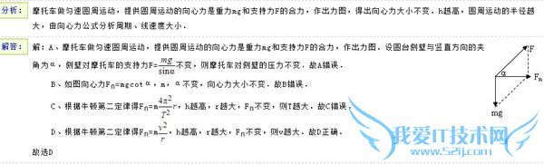 问题5:杂技演员驾驶摩托车在圆形壁上做表演,壁的倾斜角为a,问当它沿半径为R圆周上疾驶表演时,摩托车的速度为多少?这时斜壁受的压力这多大?设摩托车与驾驶员的总质量为m.[物理科目]
