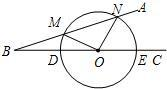 ...OB=4,以点O为圆心,12BO长为半径作⊙O交BC于点D、E...