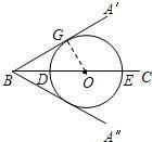 同理可知,当BA绕点B按顺时针方向旋转到BA″的位置时,BA与⊙O相切,BA绕点B按顺时针方向旋转了120°;