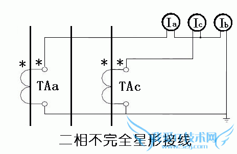 A相和C相分别接一块电流互感器,各接A相和C相电流表,从A相和C相引出的电流再接到一起,形成负(-)B相电流,当然我们测量的是交流电,方向虽然是负的,但电流表确是指向正.