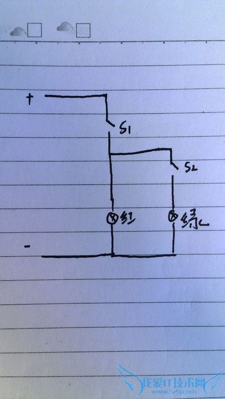 2当闭s1后合s2时候绿灯亮说明s2和绿灯在一个回路.