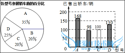 (1)∵D型号轿车的百分比为1-35%-20%-20%=25%,