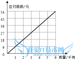 (1) 质量/千克 0 1 2 3 4 5 … 应付钱数/元 0 9 18 27 36 45 …(2)画图.