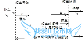 两车行驶的路程即平移的距离,从图中很容易看出:在超车时间内两车的路程差等于a+b.