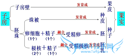 从图中可知,受精后,在果实形成过程中,胚珠发育成种子,珠被发育成种皮受精卵发育成胚,整个子房发育成果实.