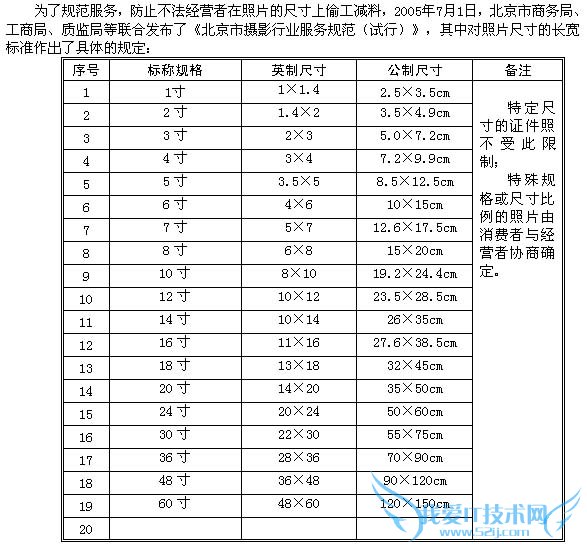 下面是常见照片的尺寸对照表:规格[英寸] 尺寸(cm)