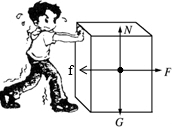 问题4:如图所示,一位同学在用力推箱子匀速前进,请画出箱子的受力示意图.[物理科目]
