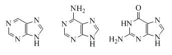 从左到右, 嘌呤,腺嘌呤, 鸟嘌呤