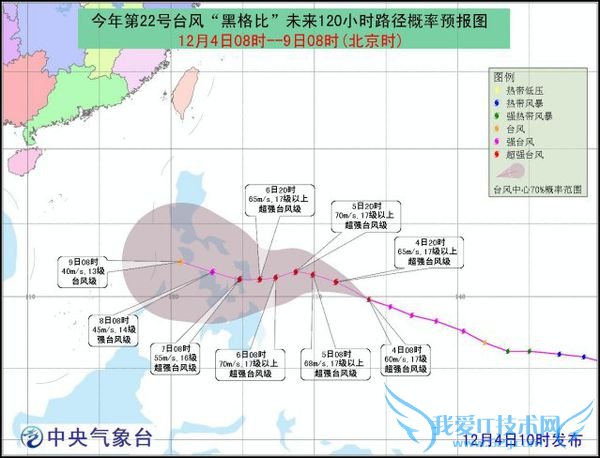 今天是2014年12月4号,5号的卫星图我穿越不了,以下是4号的卫星图以及台风路径预报图