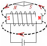 (1)题中知道电流的方向,根据安培定则可以判断出螺线管的极性,再根据同名磁极相互排斥,异名磁极相互排斥,可以画出如图所示: