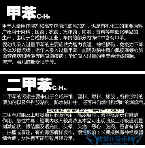 车内污染源主要来自于5个方面,分别是甲醛,苯,甲苯,二甲苯和TVOC(总挥发性有机化合物,主要含乙苯、苯乙烯、乙醛、丙烯醛等),这些物质究竟对我们人身体有哪些危害呢?请见下图.