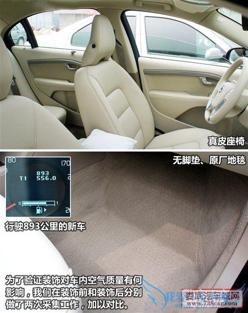 为了验证装饰是否会散发有害气体,我们在论坛上征集了一位车主,他刚刚购买了一辆沃尔沃S80车型,原厂配有真皮座椅、真皮方向盘、原厂地毯(无脚垫)、未贴膜.为了能够产生对比的效果,在装饰前我们对其进行了车内空气质量的采集,之后车主自己选择装饰,然后我们在对其车辆进行空气采样.