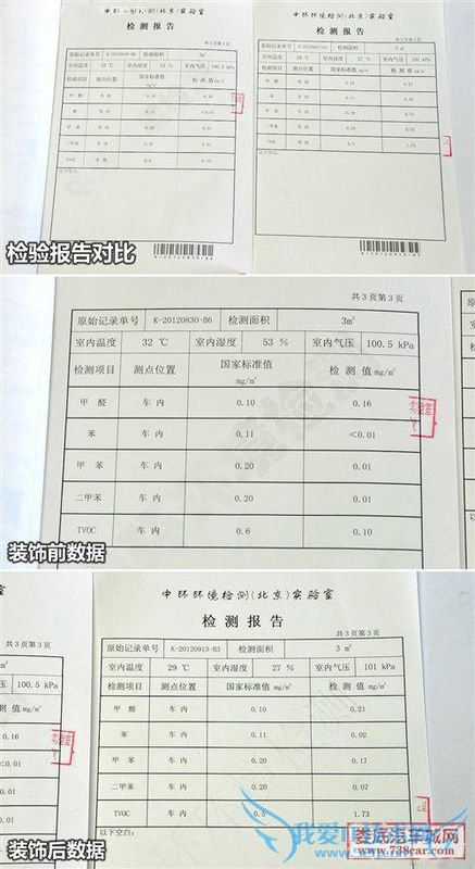 过观察最终的测试结果我们不难发现问题,加装装饰后所有污染物数值都升高了,而甲醛、TVOC这两项数据更是超出了国家标准范围.其他的三项数据苯、甲苯、二甲苯虽然升高,但是未超过国家的标准数值.由此看来,加装装饰对车内的空气质量是有很大的影响.