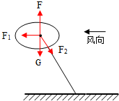 绳子的拉力是沿着绳子向下的 还受重力(但氢气球的重力应该可以忽略不计) 还受风吹的拉力