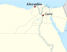 埃及地图,开罗只是位于尼罗河的下游,但离出海口还有距离,而亚历山大城在尼罗河的出海口附近,正宗的顶端