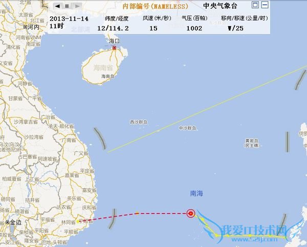 热带低压强度不够,没有形成台风,最新的位置:北纬12.0度,东经114.2度,中心最大风力7级。