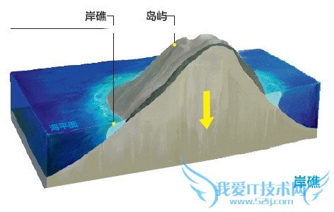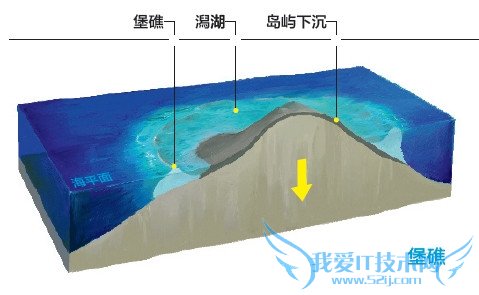 2.岛屿随着地质沉降而下沉,原先围绕海岛生长的珊瑚礁与海岛被浅海隔开,这时的礁体被称为堡礁。