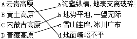 那达慕大会是我国蒙古族的传统活动,火把节是我国彝族的传统活动,泼水节是傣族的活动,雪顿节是藏族的活动,开斋节是回族的节日,丰收节是高山族的活动,元宵节是汉族的节日.青藏高原起伏平缓,雪山连绵,冰川广布;内蒙古高原地势平坦,一望无际;黄土高原沟壑纵横,黄土广布;云贵高原地面崎岖,喀斯特地貌典型.根据题意.