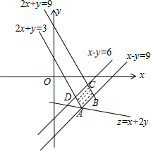 由约束条件3≤2x+y≤96≤x?y≤9