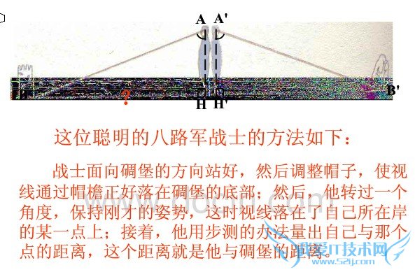 问题1:小光的爷爷为我们讲述了一个他亲身经历的故事:在抗日战争期间,为了炸毁与我军阵地块隔河相望的日军的碉堡,需要测出我军阵地到日军碉堡的距离.由于没有任何测量工具,我军战士为此绞[数学科目]