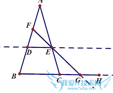已知如图所示,在△ABC中,DE//BC,F是AB上的一点,FE的延长线交BC的延长线于点G,试说明∠EGH>∠ADE