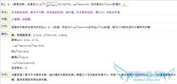 问题5:①方程ax2+bx+c=0中a,b,c都是实数,且满足(2-a)2+|c+8|+√a2+b+c=0,求代数式1/2x2+x+1的值.②已知关于x的方程x2+(k+2)x+2k-1=0(1)求证:对于任意实数k,方程总有两个不相等的实数根.(2)当k为[数学科目]