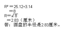 问题5:一圆盘的面积是25..12cm2,该圆盘的半径是多少?(π取3.14)