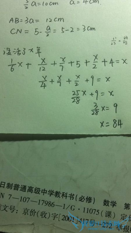 问题4:丢番图是古希腊著名的科学家.他的墓碑上的题词与众不同,像一道数学题.过路人!这儿埋着丢番图的骨灰.下面的数目可以告诉你,他的寿命究竟有多长.他一生的六分之一是童年生活.再活了十
