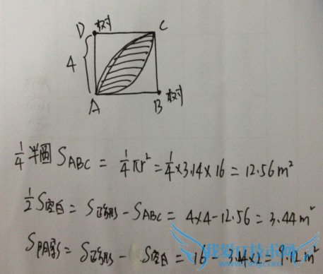 问题5:边长4米的正方形草地上,两对角各有一棵树,树上各拴一只羊.拴羊的绳子各长4米,两只羊能同时吃到的面积还求一张阴影图……[数学科目]