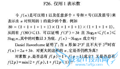 仅用1表示数即只用1通过加法和乘法以及括号来表示自然数,对于给定的自然数n,用1来表示时,1的最少个数记为f(n).Richard K·Guy提出数学猜想:对于给定的素数p,f(p)=f(p-1)+1是否成立.很考验毅力