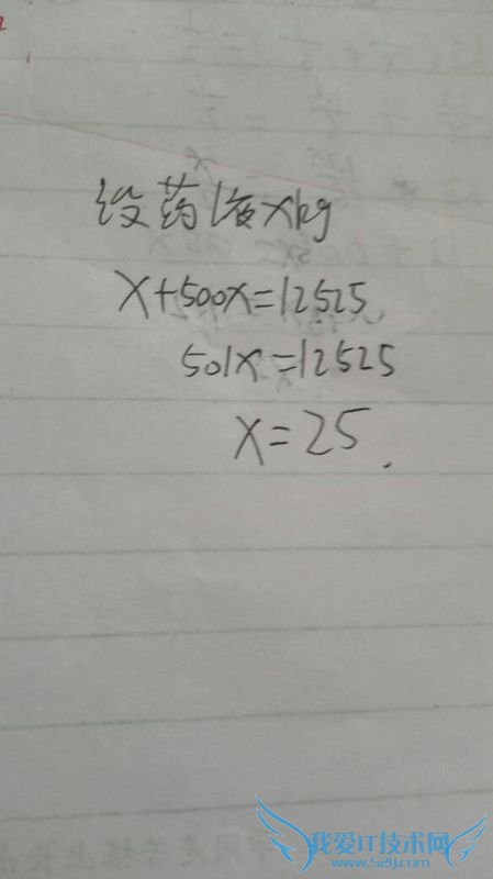 问题3:一种药水是把药液和水按1:500配置成的,现在要配制这种药水12525千克,需要药液多少克?(用方程解)[数学科目]