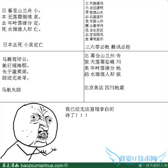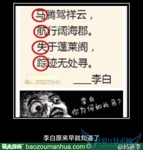 这样一首诗在网上流传已久,传说是李白一千多年前写的,网龄不算太短的朋友们估计都见过: