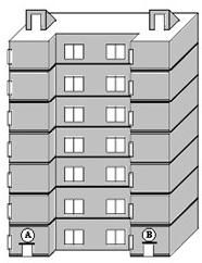 图,小明、小亮家住同一栋七层楼的两个不同单元,该楼楼顶是相通的,小明家住A单元的6楼,小亮家住B单元,小明到小亮家去有两种方式:一种是先下楼通过地面再进入B单元到小亮家;另一种是先上楼通过楼顶进入B单元到小亮家.