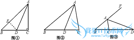 (2)如图③,当AD为△ABC的外角平分线时,线段AB、AC、CD又有怎样的数量关系?请写出你的猜想,并对你的猜想给予证明.