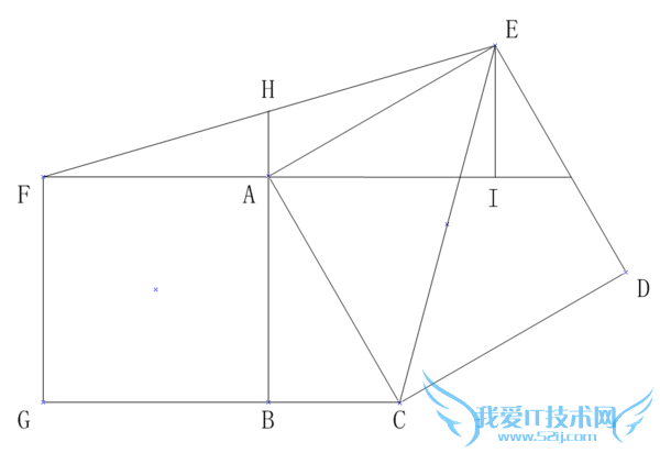 在△ABC和△AEI中,∠IAE=∠BCA,∠AIE=∠ABC=90o,AE=AC,所以△ABC≌△AEI,所以AB=IE,IA=BC