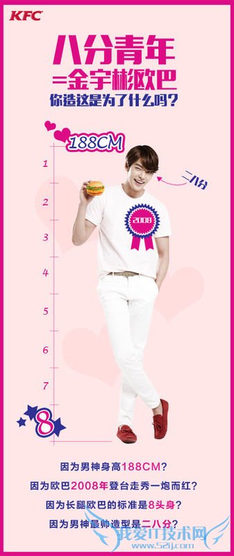 就是为肯德基代言的噱头,表明已成熟的青年人,作为八分青年,无论在爱情、工作或交友等方面,都拥着有与众不同的八分观点
