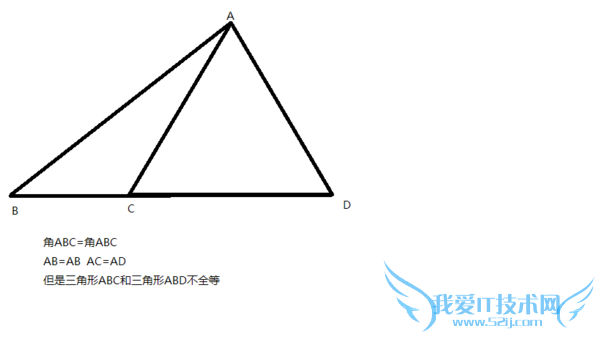 问题4:两个三角形中,两边及其中一边的对角对应相等,则这两个三角形全等.反例:(画出图形,并加以说明)[数学科目]
