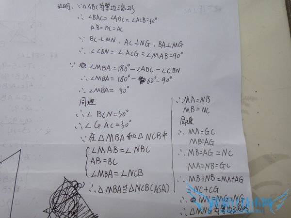 问题5:如图,过等边三角形ABC的顶点a,b,C依次作ab,bc,ca的垂线mg,mn,ng,三垂线围成三角形mng,求证三角形mng为等边三角形[数学科目]