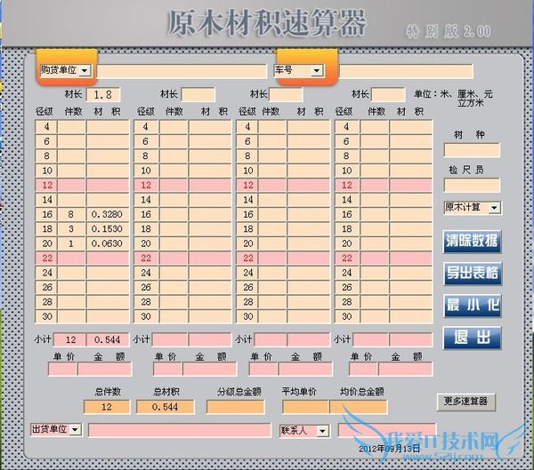 原木材积的计算公式相当复杂,参数非常多,所以我们个人是算不出来的,都是看原木材积表的,你可以到书店买原木材积表或上网下载.