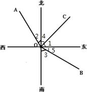 有个画图的:如图, 一艘客轮沿东北方向OC行驶,在海上O处发现灯塔A在北偏西30°方向上, 灯塔B在南偏东60°方向上. (1)在图中画出射线OA、OB、OC;
