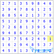 类别:数学 发布时间:16-04-27 点击:1730根据第7和第9列以及第2行的3,右上的9宫格的3应填在第1行的第8列的位置.根据第8和第9行以及第6列的4,中下的9宫格的4应填在第7行的第4列的位置.根据第5行和第7列的5,右...