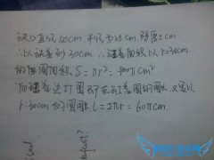 50÷2+5=30(厘米),(1)3.14×302,=3.14×900,=2826(平方厘米);(2)2×3.14×30,=6.28×30,=188.4(厘米);答:这个缸盖的面积是2826平方厘米,金属条长...