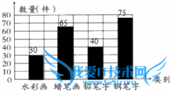 制作统计图如下:(2)一格代表10件作品.(3)水彩画比蜡笔画少多少件?65-30=35(件);答:水彩画比蜡笔画少35件.故答案为:10....