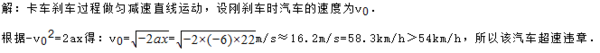 问题5:高中物理必修一某城市规定,卡车在市区内行驶的速度不得超过54km/h.某日,一辆快速行驶的卡车紧急刹车后,在路面上留下一道黑色的轮胎磨痕.经测量,该磨痕长度为22m.已知卡车紧急刹车的加速[物理科目]