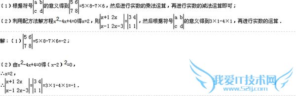 (2)利用配方法解方程x2-4x+4=0得x=2,则.x+1x-12x2x-3.=.3141.,然后根据符号.abcd.的意义得到3×1-4×1,再进行实数的运算.