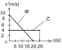 用v-t图,甲面积s1=(1/2)v*t=(1/2)10*20=100m