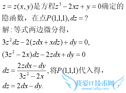 问题5:初等微积分设z = z(x,y)是方程z^3 - 2xz + y = 0确定的隐函数,在点P(1,1,1),dz[数学科目]