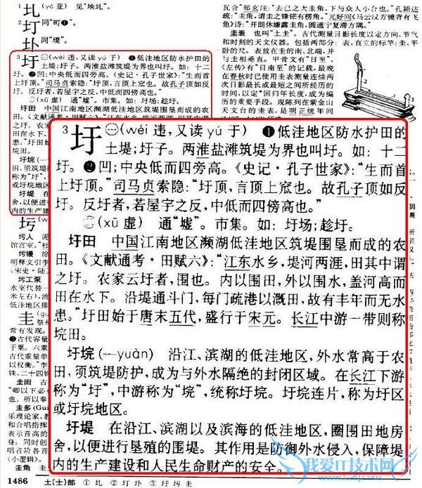 “圩”在《辞海》中的释义,请看《辞海(1999年缩印版)》(上海辞书出版社出版 2000年1月第1版)第1486页扫描