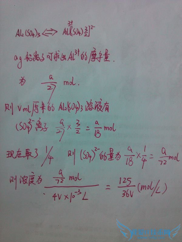 答案选C,要求摩尔浓度,就要先知道摩尔量,再知道体积,题干给的很清楚,因为是稀释到4V毫升,所以体积就已经知道是4V毫升,告诉铝离子a克是用来间接求取硫酸根离子浓度的解答过程如下图