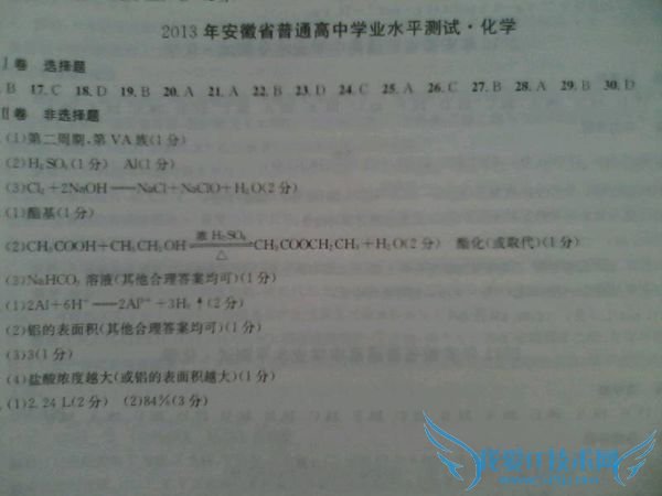 问题4:2013年安徽普通高中学业水平测试化学部分答案需求2013安徽省学业水平测试的答案,有的朋友希望提供下.只要化学就够了,[数学科目]